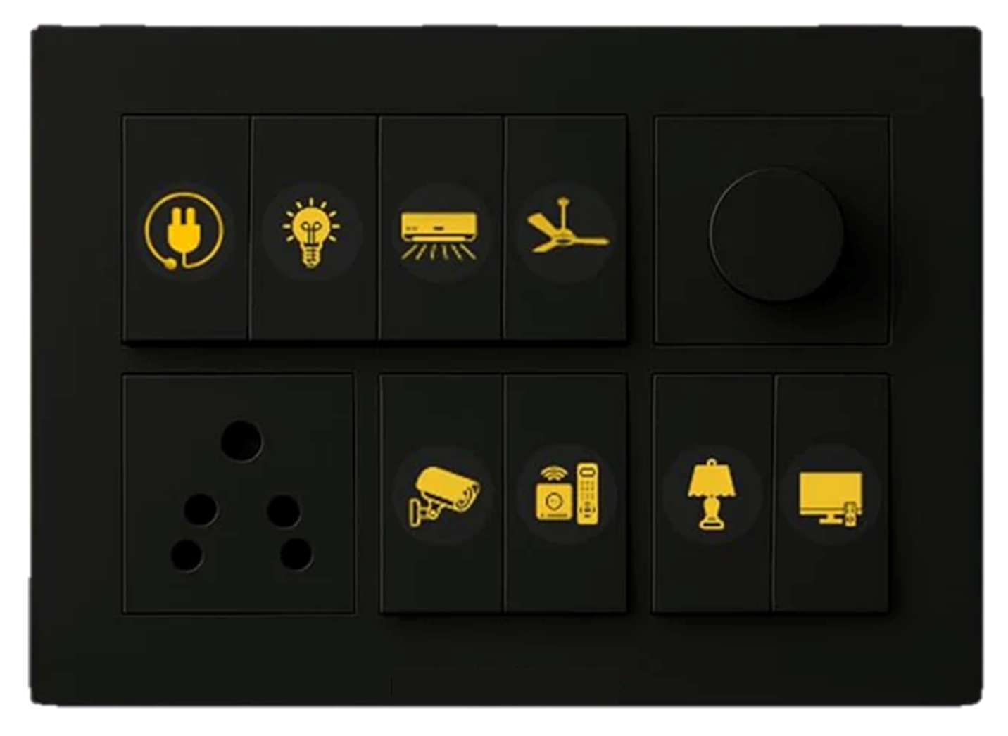 Functional Icons: Includes clear symbols for Fans, Lights, AC, Geyser, Doorbell, and more.